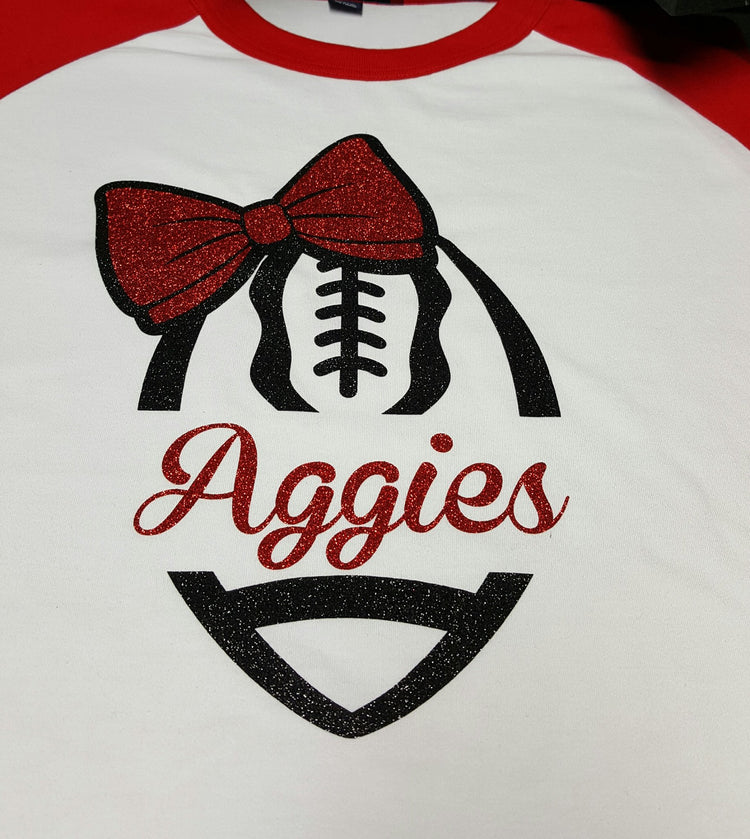 Vinyl printing on t-shirts is a process that involves a machine that cuts out designs and letters to make your custom t-shirts. Once the vinyl is cut out, it is then applied to your t-shirts with a heat press.