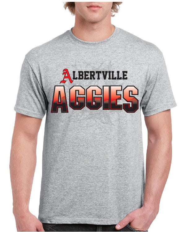 Get ready to rock on game day with our Albertville Aggies Tee! This top is the ultimate way to flaunt your school spirit! We have you covered with direct-to-film. Let us help you represent your school in style! Call for pricing on any large quantity over 24 shirts.