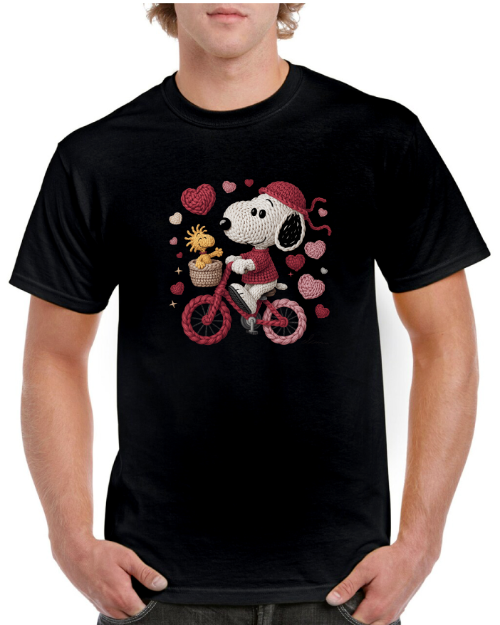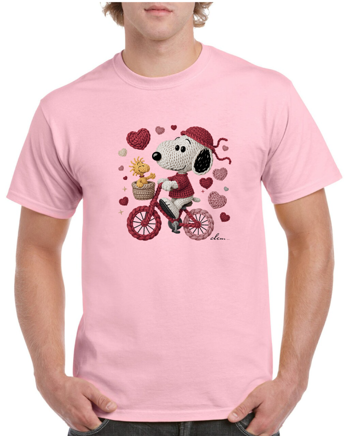 Celebrate the season of love with this charming Snoopy-inspired tee featuring a classic biking motif. Perfect for Valentine's Day enthusiasts and Peanuts fans alike, this expertly crafted shirt combines nostalgic character appeal with contemporary comfort. The design captures Snoopy's playful spirit as he pedals through romance, making it an ideal gift or personal wardrobe addition. Crafted from quality materials for everyday wear, this tee delivers both style and durability for fans of all ages.