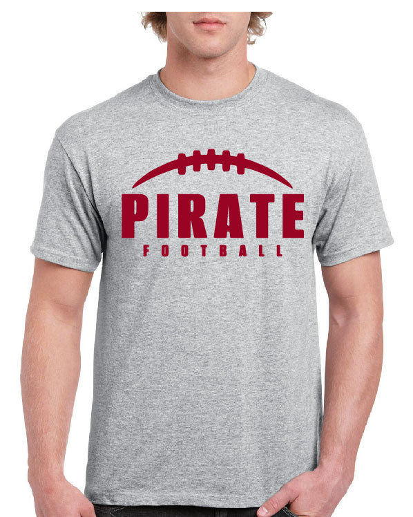 Prepare to unleash your inner pirate as you embrace the Football Pirates Tee and show off your school spirit! We have you covered with direct-to-film. Let us help you represent your school in style! Call for pricing on any large quantity over 24 shirts.