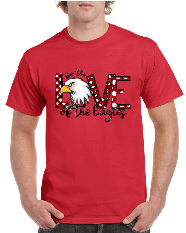 Experience the unrivaled spirit of your school with the For The Love Of The Eagles Basketball tee, featuring an abstract design inspired by the world of basketball. We have you covered with direct-to-film. Let us help you represent your school in style! Call for pricing on any large quantity over 24 shirts.