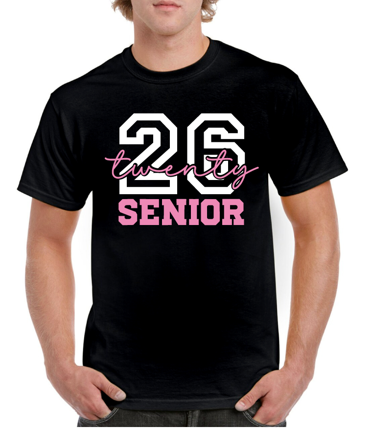 Celebrate the class of 2026 with this striking pink senior tee, designed to commemorate your graduation year in bold style. The vibrant hue and classic fit make it perfect for senior events, class photos, or everyday wear that showcases your pride. A timeless keepsake that captures this milestone moment with understated elegance.