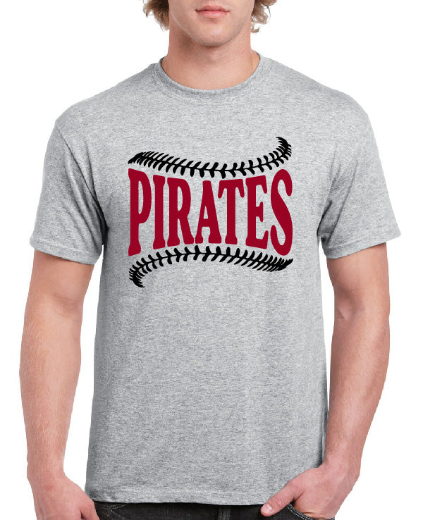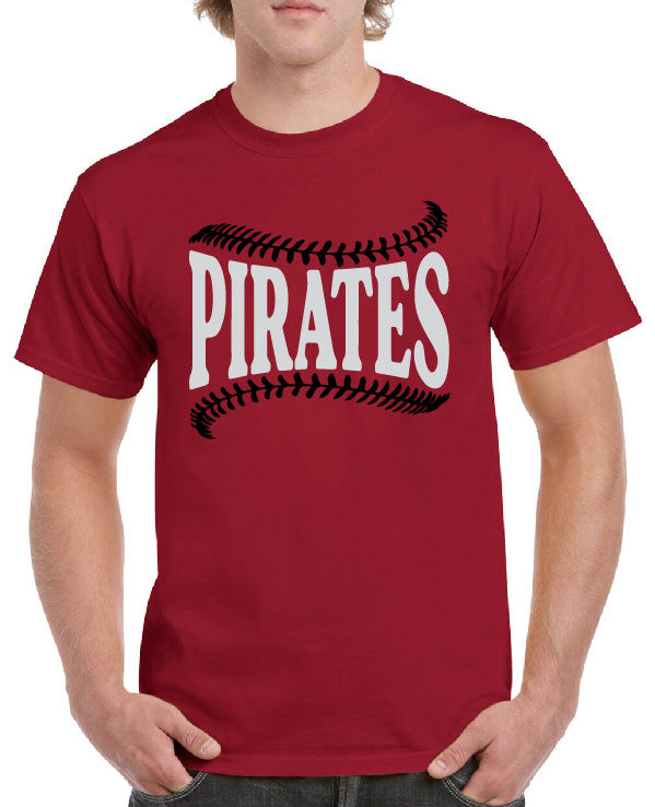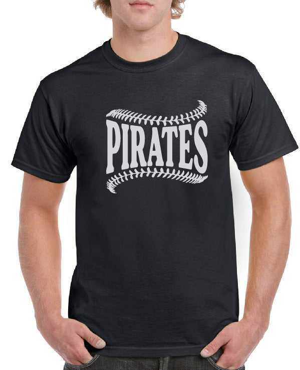 Cheer on your team and show off your school spirit with our Pirates Baseball outline Tee, perfect for game day! We have you covered with direct-to-film. Let us help you represent your school in style! Call for pricing on any large quantity over 24 shirts.