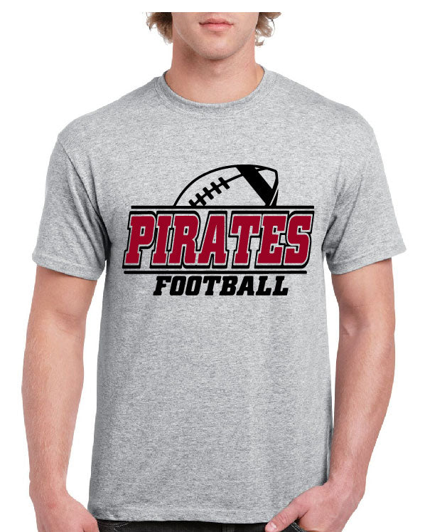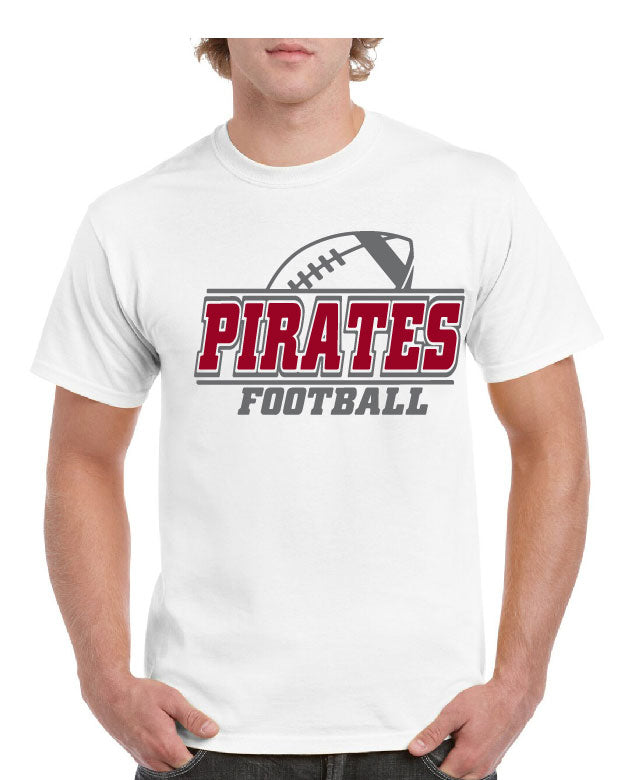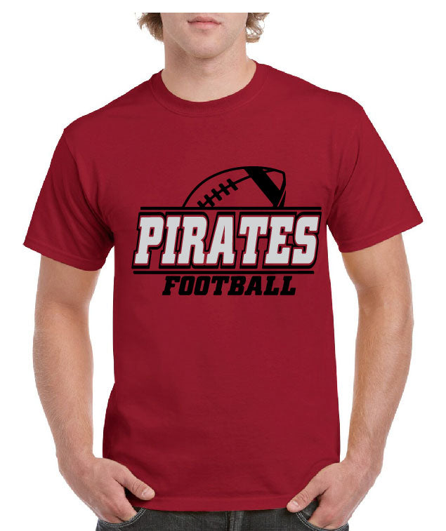 Get ready to release your inner pirate with the Football Pirates Tee and proudly display your school spirit! We have you covered with direct-to-film. Let us help you represent your school in style! Call for pricing on any large quantity over 24 shirts.